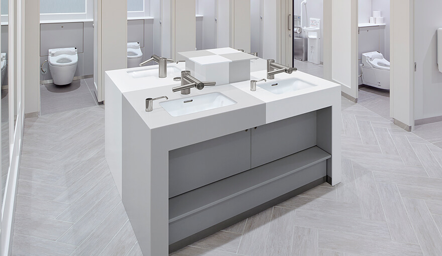 そうした状況下で小林氏は、トイレの質を向上させるとともに、通路もデザインの対象とし、役割を持たせるなどして、店舗とトイレに繋がりをつくる提案を重ねた。やがて、商業施設を中心にトイレの重要性が理解されるようになり、あらゆる場面で、建築の設計段階からプロジェクトに参加することが増えたという。