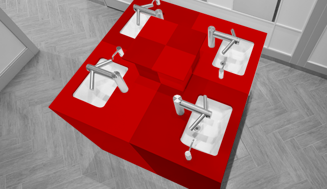 手洗いを空間のセンターに配置し、水の沸く場所、水源を表現(4階女性用トイレ)。