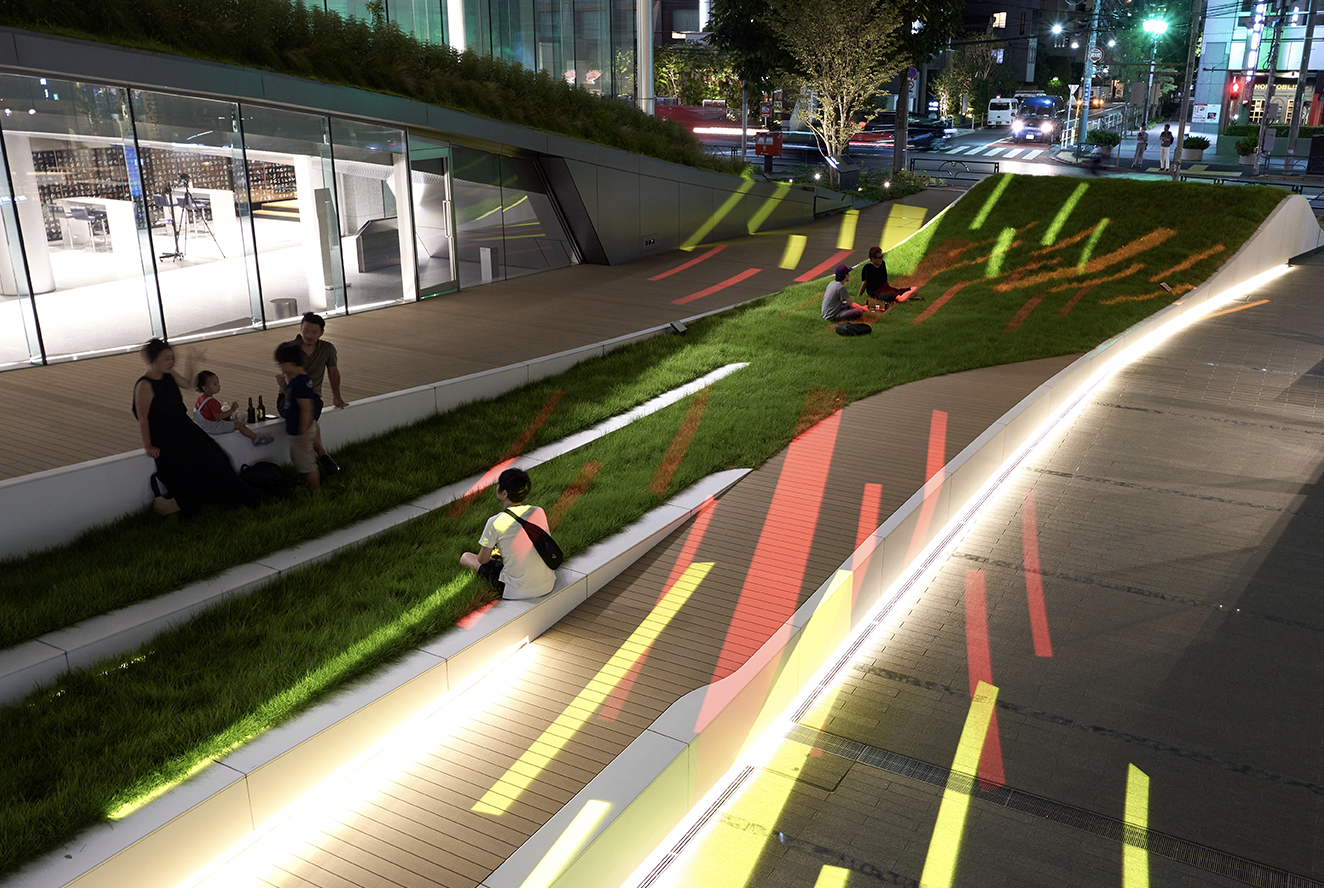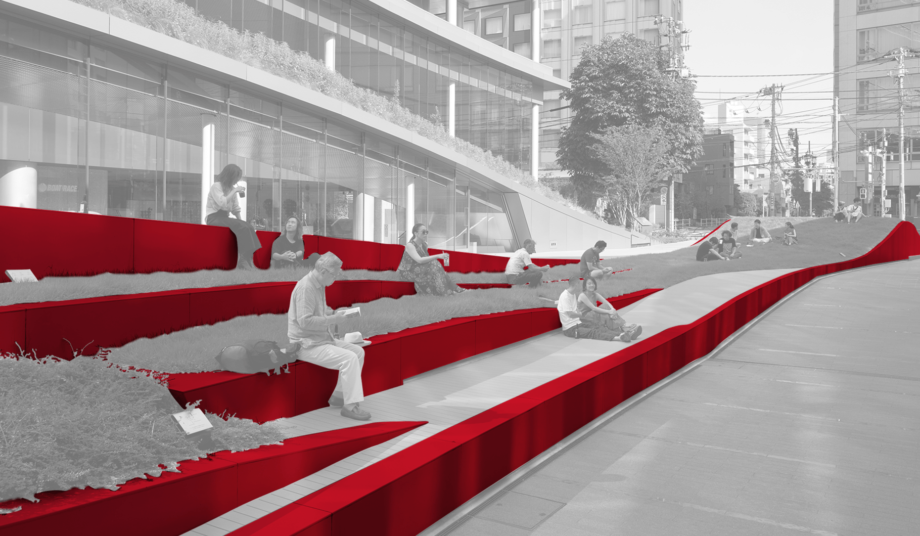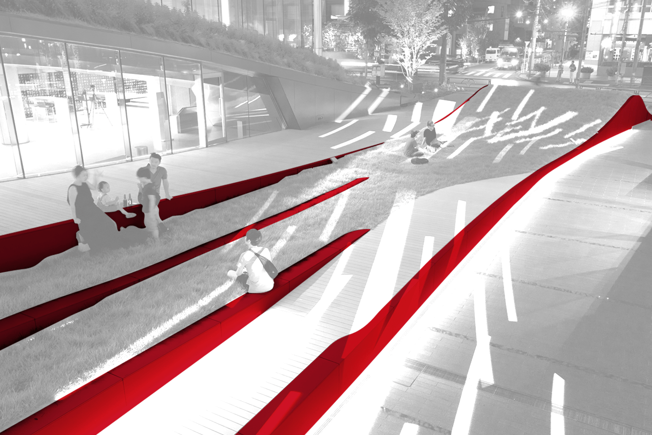 「構想を練る前にまずはボートレースを観戦して臨場感を味わってみようと思い、ボートレース場に行って実際に賭けてみました。そのとき、人が勝負を見極めるときに頼るのは、わずかな風向きの変化や波の立ち方、選手の調子などに感覚を研ぎ澄ませることで得られる一瞬のひらめき、つまり第六感だと感じたのです。だったらそれを広場のコンセプトにして、人々の “シックスセンス”を心地よく刺激する環境を六本木に創り出そうと思いました」と語る。