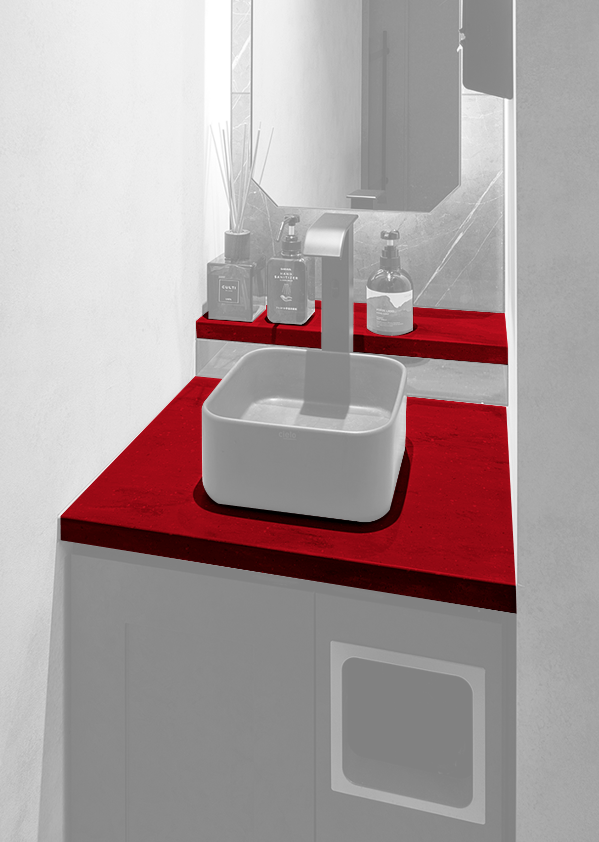 カウンターは8分割で現場へ搬入し、シームレスジョイントで仕上げたという。「模様があるので多少は継ぎ目が出てしまうと思っていましたが、想像以上にきれいな仕上がりで、接着面も全く気になりません。こんなに大きなサイズにもかかわらず、自由に描いたデザイン通りに具現化できたことに満足しています」と松井氏は笑顔を見せる。
