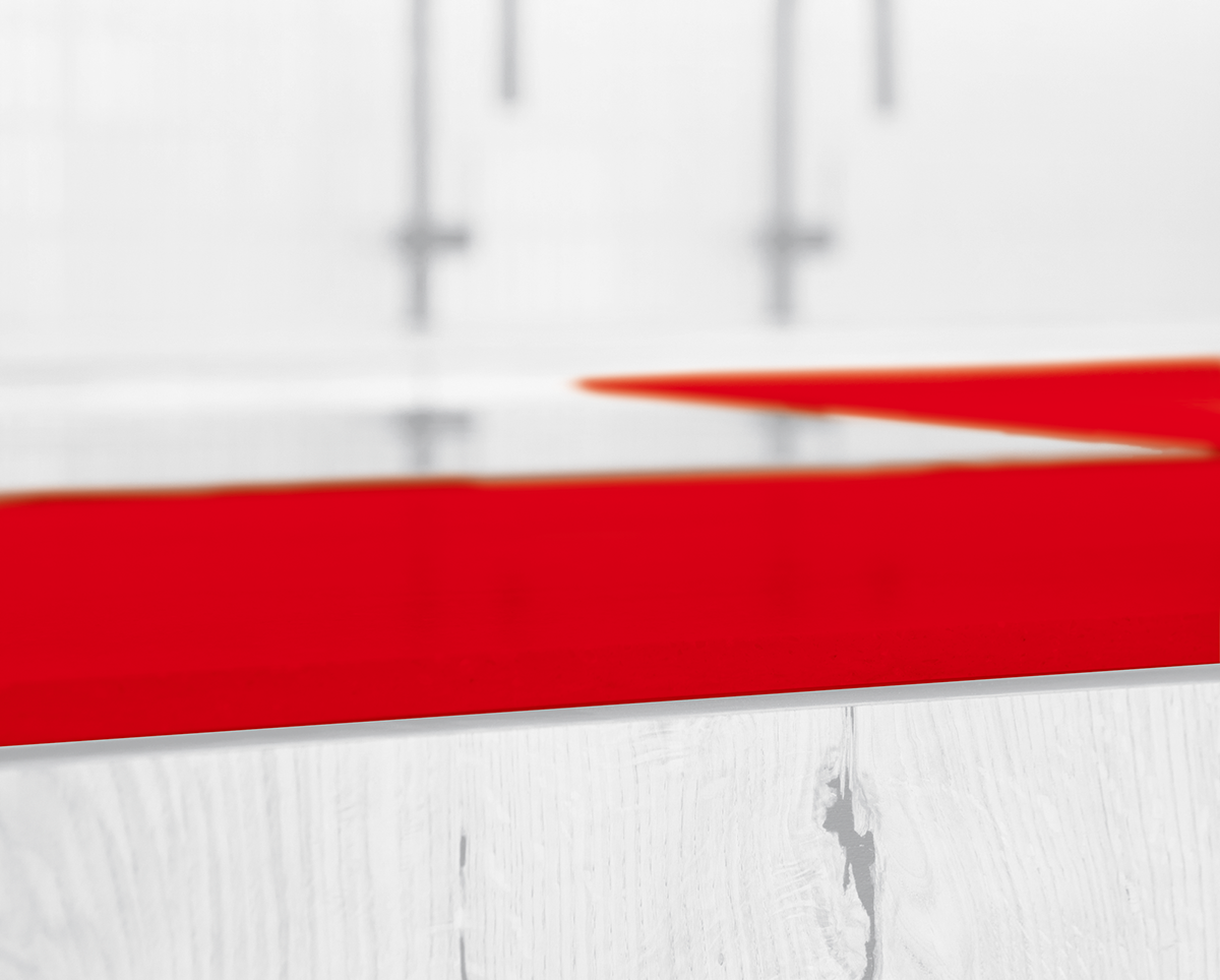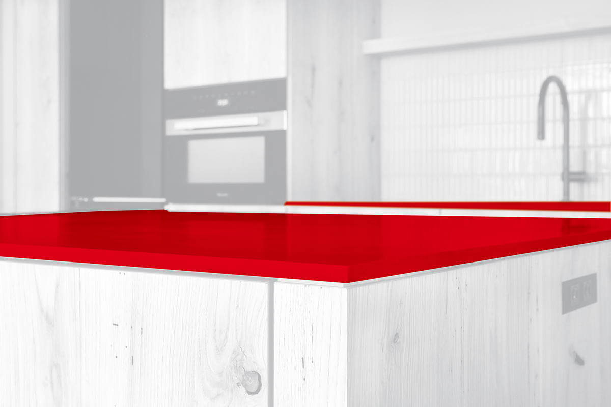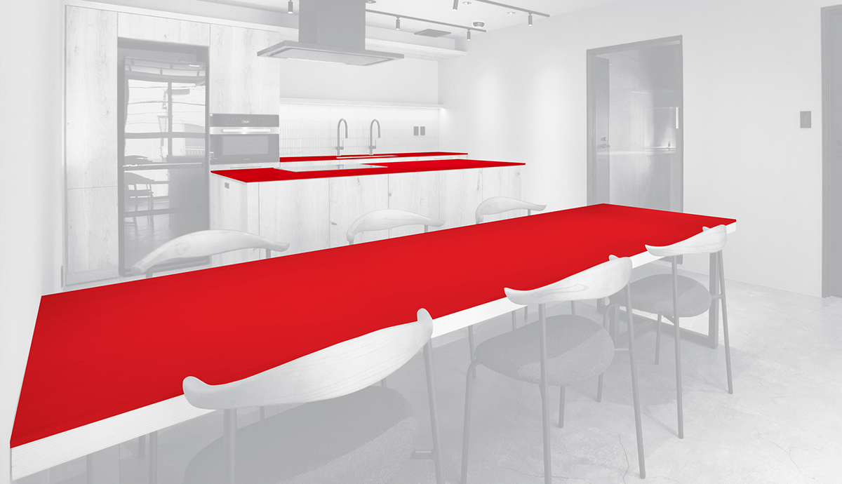 カウンタートップはコーリアン®︎の小口をそのまま見せたシンプルな仕上げ。
