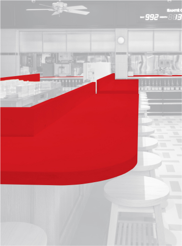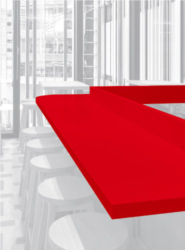 コーリアン®は「赤白」の多くの既存店で採用されており、清水氏によると「耐久性の高さは確認済み」とのこと。「8年目を迎えた店舗でもコーリアン®のカウンターは全く劣化がありません。しかも、サッと拭くだけで汚れが取れるので、スタッフにも手入れがしやすいと好評です。今回も迷いなく、信頼性の高いコーリアン®を指定しました」。