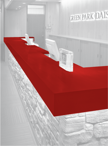 2024年、ゲストを迎えるクラブハウスの受付カウンターが改装された。以前の受付カウンターは木製だったが、経年変化による色あせや小傷が見られるようになっていたため、天板にコーリアン®を採用して刷新された。設計デザインを手がけたのは、米子市を拠点に活動する空間デザイン事務所、株式会社ベリーの久城誠之氏。「建物全体の空気感を損なうことなく、既存のロビー空間に溶け込むようなデザインを心がけました」と語る。