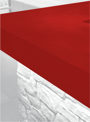 天板に採用されたのは、深みがあるブラウンのコーリアン®「カームダークブラウン」。悠久の時が刻んだ大地の模様を思わせる流れ柄には、自然の持つ力強さと優美さが同居する。ミネラル感のある落ち着いたダークトーンは、木材や擬石などの素材とも相性がよく、空間全体を引き締めるアクセントとなっている。