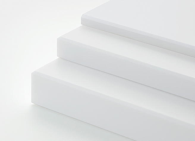 光の演出や什器、腰板などの垂直面に適しています。透光性にすぐれているので、照明器具のカバーとして用いることも可能です。