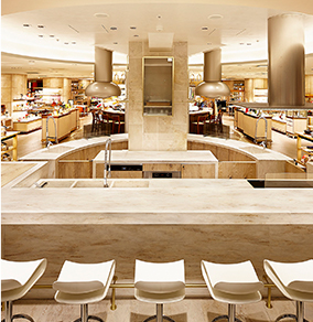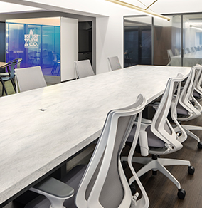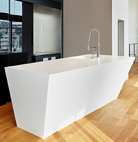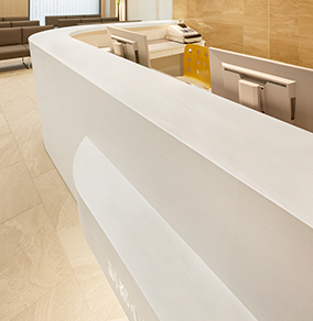 素材だけでなくデザインにおいても、汚れがたまる構造をなくすことや、手入れしやすい形状にすることは大切です。コーリアン®は専用の接着剤を使用したシームレス接着が可能。素材どうしの継ぎ目をなくすことで、汚れがたまるポイントを減らすことができます。一枚板のように一体となったデザインは、見た目の美しさにおいても喜ばれるポイントです。