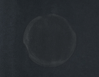 コーリアン®ディープノクターンを使用して実験を行った。表面に70%アルコールをたっぷりと吹きかけて、その上にガラスコップを8時間放置した結果、白い線が出現した。(社内実験)