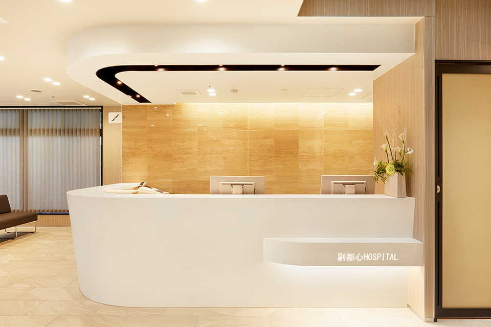 豊島区にある副都心病院は、急性期の治療が終わり、慢性期に入った人が療養を目的に入院する療養型病院。入院が長期にわたることもあるため、上質で経年後も美しさを保てる素材を使い、寛ぎの空間になるよう配慮されている。「耐候性はもちろん、対薬品性にも優れているので病院建築にも安心して使用できる素材ですね」と設計担当者は語ってくれた。