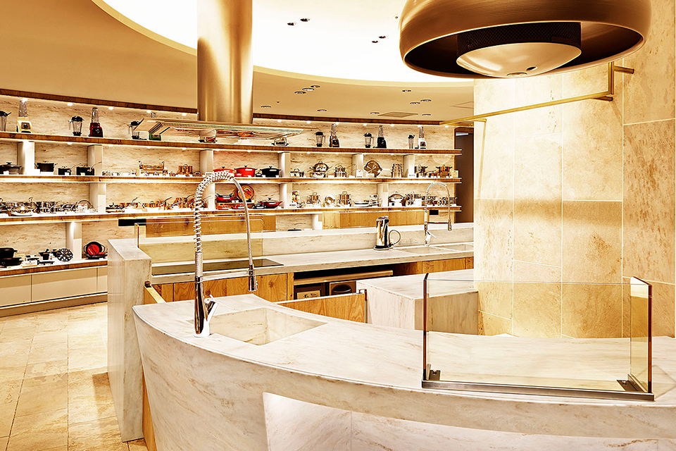 「伊勢丹新宿本店」本館の5、6階フロアにはコーリアン®が採用されている。「置いてあるものが本物ばかりなので、壁や什器もそれに負けない素材を世界中から探しました」とデザイン担当者。「コーリアン®を使用することで、デザインのイメージをそのまま表現することができました。加工精度の高さに加え、美的観点からも優れた素材だと感じています」とのことだった。