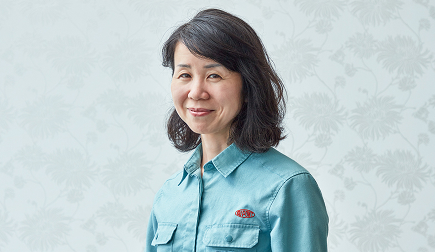 説明してくれた人:藤田 香織さん デュポン・MCC 富山工場 製造技術グループ。1992年、三菱レイヨン入社。デュポン株式会社との合弁会社であるMRC・デュポン(現・デュポン・MCC)に配属され、入社時からコーリアン®の技術開発に携わっている。休日はショッピングや美術館に出かけるのが好き。