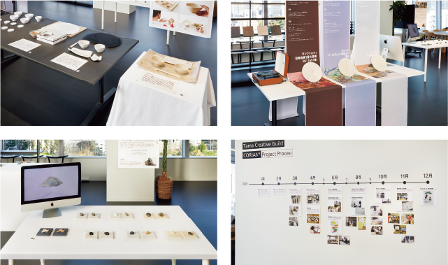 今回は「CORIAN®をもっと身近に」をテーマとして、同大学の学部を横断した学生コミュニティ「TCG(Tama Creative Guild)」の手による作品を展示したものです。各作品の制作グループより、代表でお一人ずつそれぞれの作品について語っていただきました。
