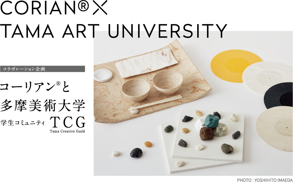 東京ミッドタウン・ミッドタウンタワー5F デザインHUB内の多摩美術大学TUBで、同学の学生コミュニティであるTCG(Tama Creative Guild)とデュポン・MCCとの産学共同展示会「Creative Confluence ~人工大理石の探求~」が開催されました。
